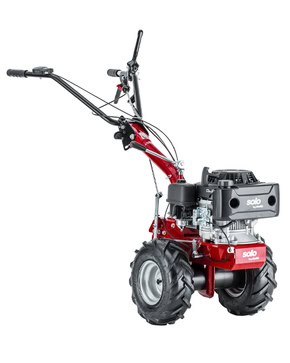 With the 3.8 kW output of its powerful 196 cc petrol engine, the combi machine is ideally equipped to take on a wide range of tasks efficiently, saving time and with little strain on the operator. The transmission is operated via a worm gear in an oil bath, thus ensuring a long service life.The wheel drive with forward and reverse gear (2.2/1.1 km/h) ensures consistent work and fast, effortless passage through any terrain, increases safety when operating the machine and makes the machine extremely manoeuvrable.