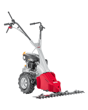 This BM 875 IV scythe mower impresses with efficient mowing results on a large scale – in proven AL-KO quality. Independent and extremely maneuverable, it handles all mowing tasks quickly and efficiently with a cutting width of 87 cm. The extremely powerful 2.7 kW petrol engine with wheel drive ensures easy cutting and reliable cutting, even in tall undergrowth, dense vegetation, off-road and on slopes. This is where the machine demonstrates its great maneuverability, which allows it to handle any meadow edge and field boundary. This is made possible by its short design, the extra-large wide tires with off-road tread, and the ergonomic, height-adjustable, vibration-damped handlebar.